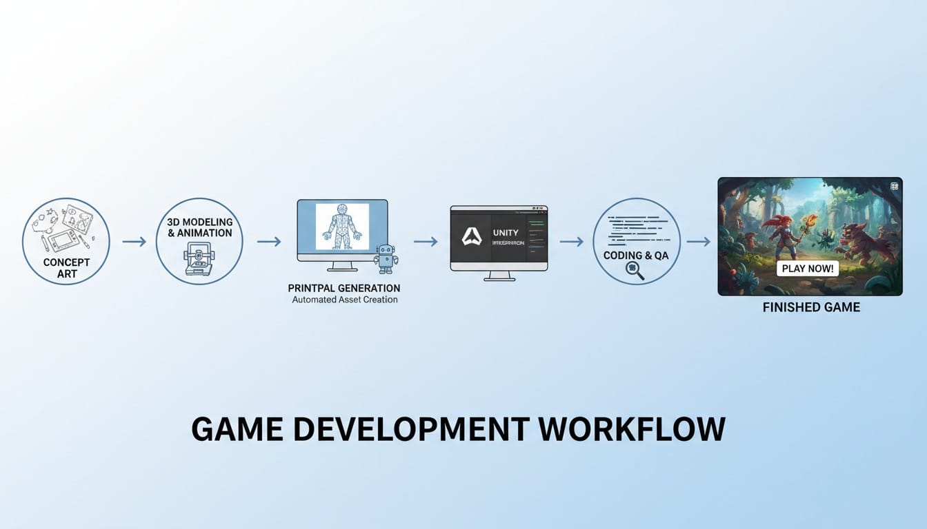 Game developers face constant pressure to create high-quality 3D assets quickly while maintaining creative vision and staying within budget. Traditional 3D modeling requires specialized skills and significant time investment, creating bottlenecks in development pipelines. Generative AI transforms this process by enabling developers to create custom game assets in minutes rather than days. PrintPal's AI-powered 3D generator provides game developers with text-to-3D and image-to-3D capabilities that produce Unity-compatible models instantly. This guide walks you through the complete workflow for generating, optimizing, and integrating AI-created assets into your game development projects.
