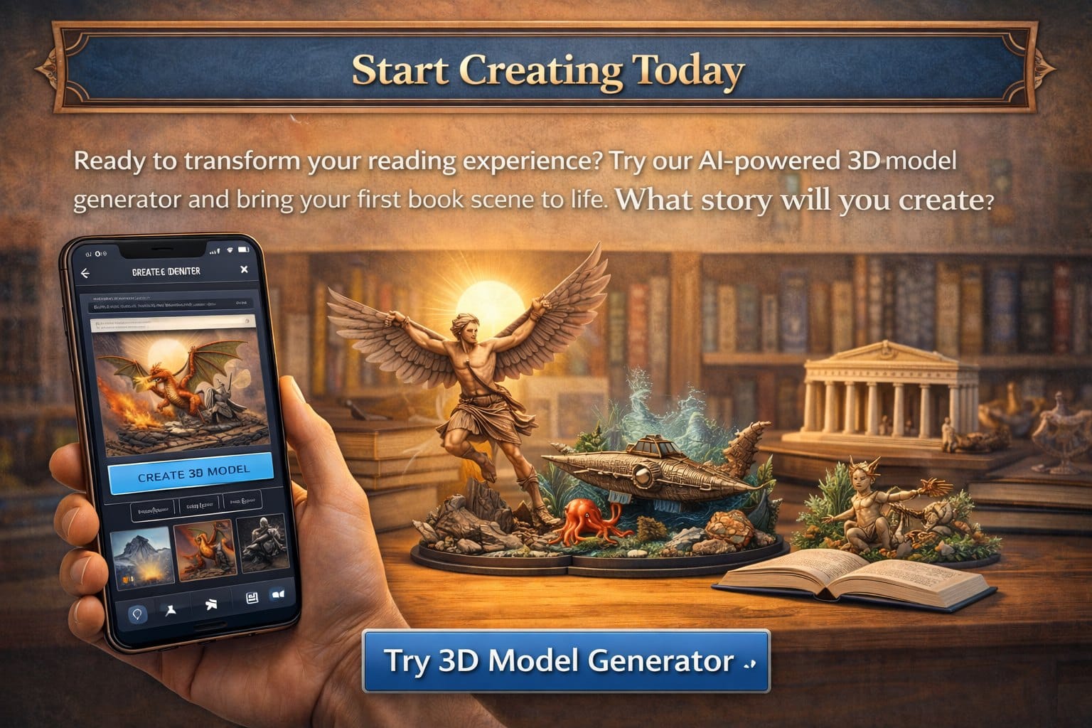 Ready to transform your reading experience? Try our AI-powered 3D model generator and bring your first book scene to life. What story will you create?