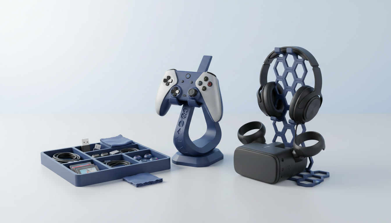 Universal Gaming Decor: Design gaming-themed organizers, controller stands, headset holders, and desk accessories that celebrate gaming without using copyrighted content.