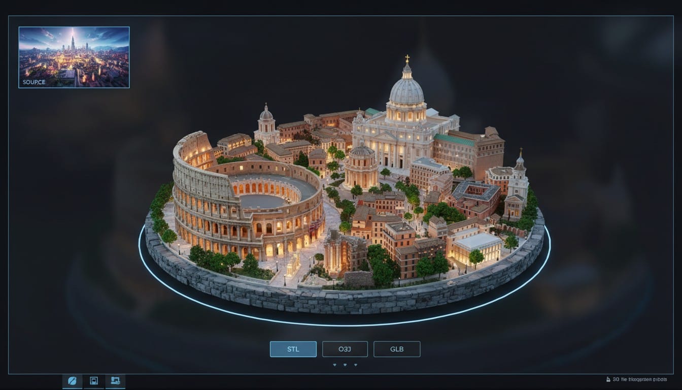 Upload reference images for precision. When you need a model of a specific neighborhood or viewpoint, uploading a map screenshot gives you much more control than text-only generation.