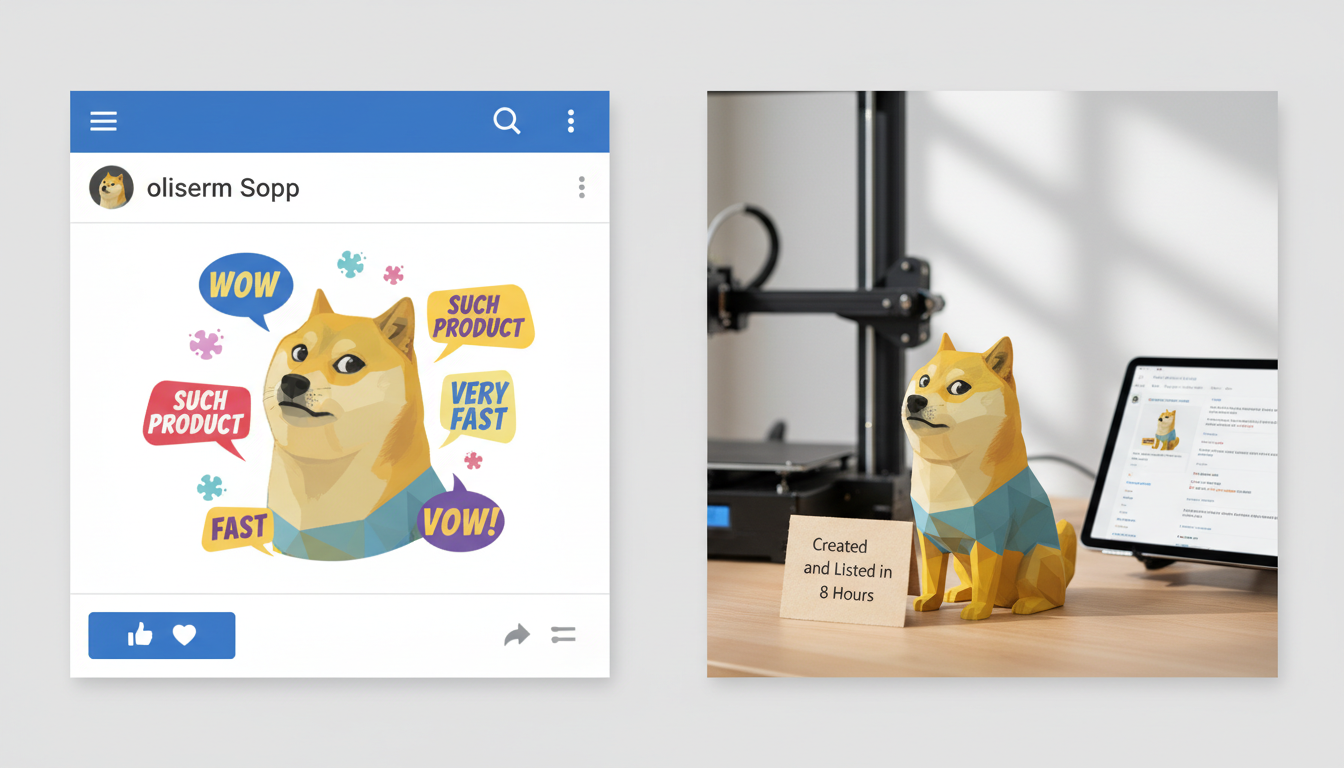 Quick Reaction Strategy: Convert viral meme screenshots into desk toys, ornaments, or display pieces. Price accessibly for impulse purchases. List across multiple platforms simultaneously.