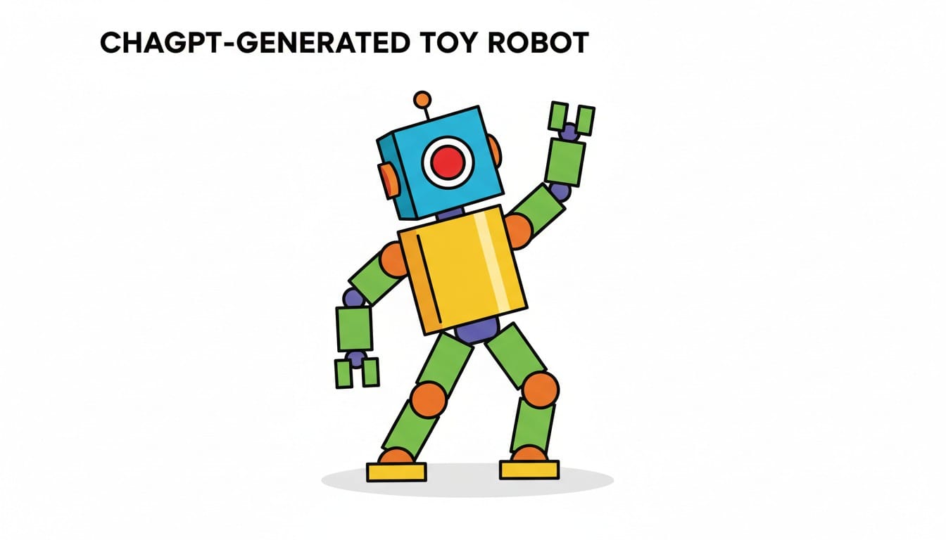 Prompt Template: "Generate [toy description], playful design, solid colors, simple geometry, photographed against seamless white background"