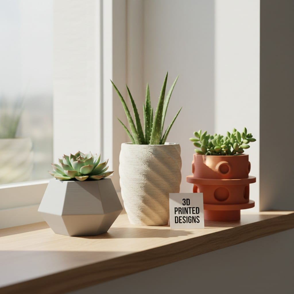 Small planters for succulents or herbs combine function with design while teaching you about watertight printing and finish quality.