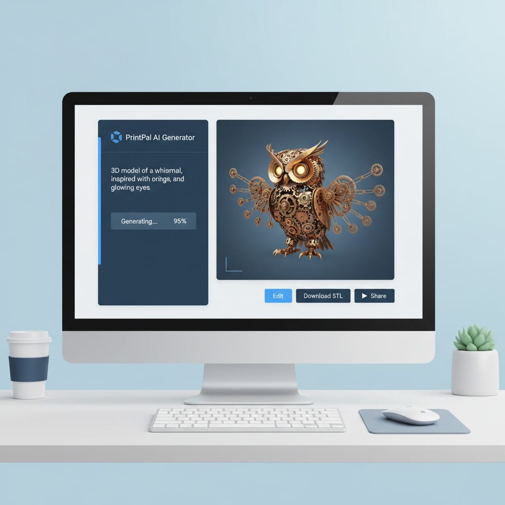 AI-Powered Generation: PrintPal's 3D model generator transforms text descriptions or images into printable models. Describe what you need and generate it in minutes.