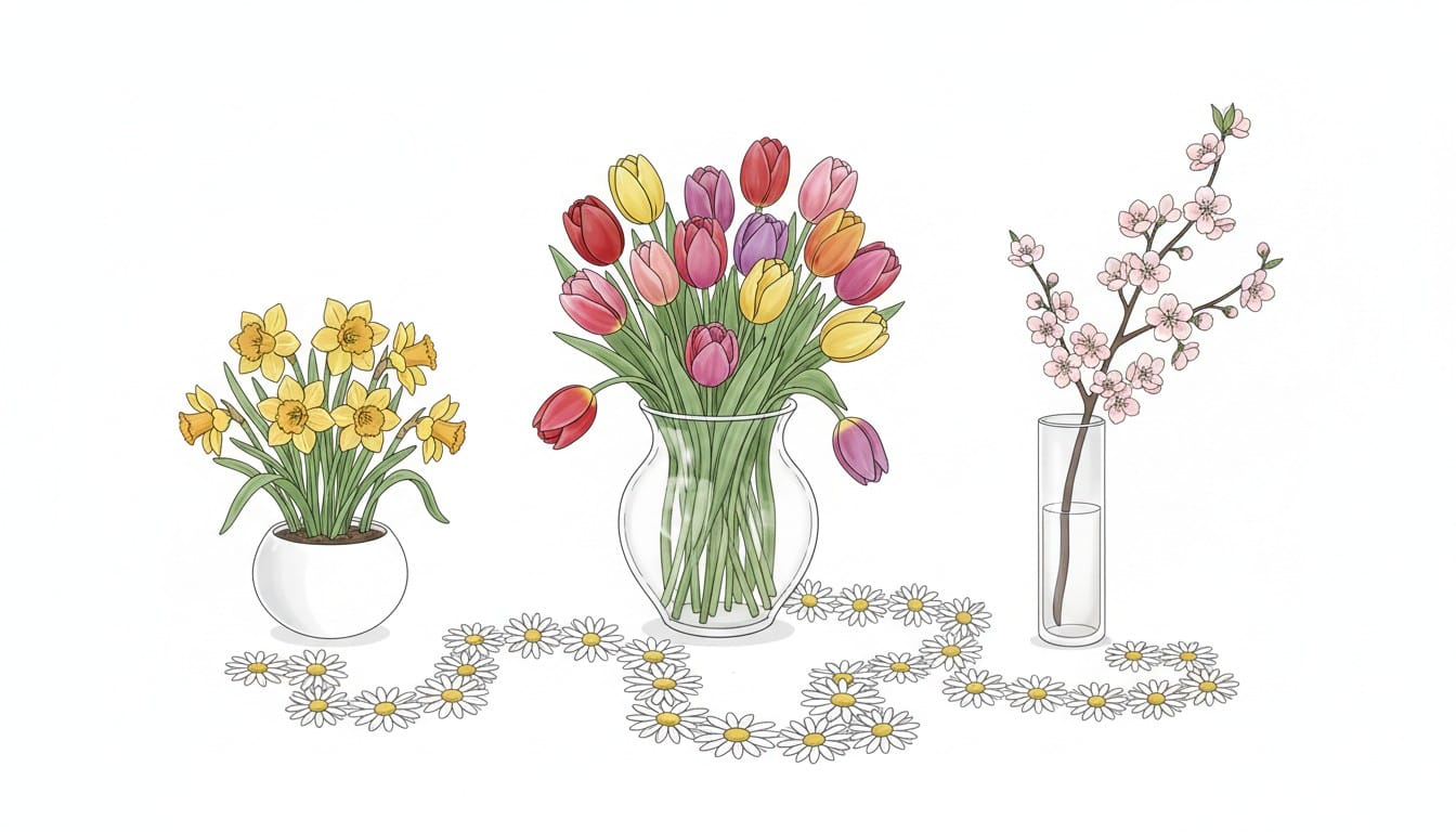 Tulip Bouquets: Print colorful tulips in various colors for mixed spring arrangements. No water needed, no pollen problems.