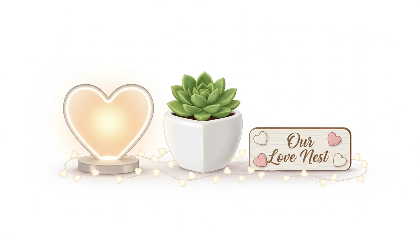 Romantic Light Fixtures: Heart-shaped lamp shades or LED light holders create ambient romantic lighting perfect for special evenings.