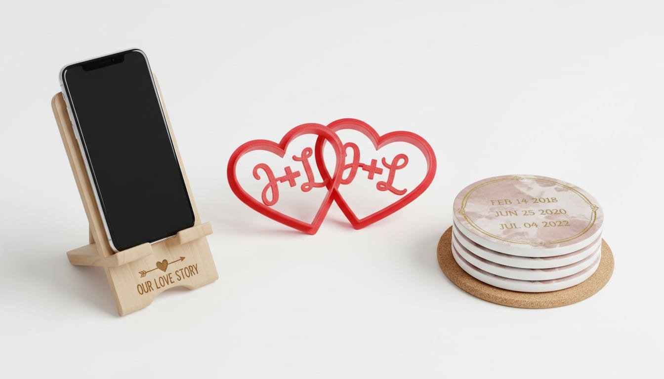 Custom Keychains: Heart-shaped or personalized keychains with names, dates, or meaningful coordinates. Practical gifts carried daily.